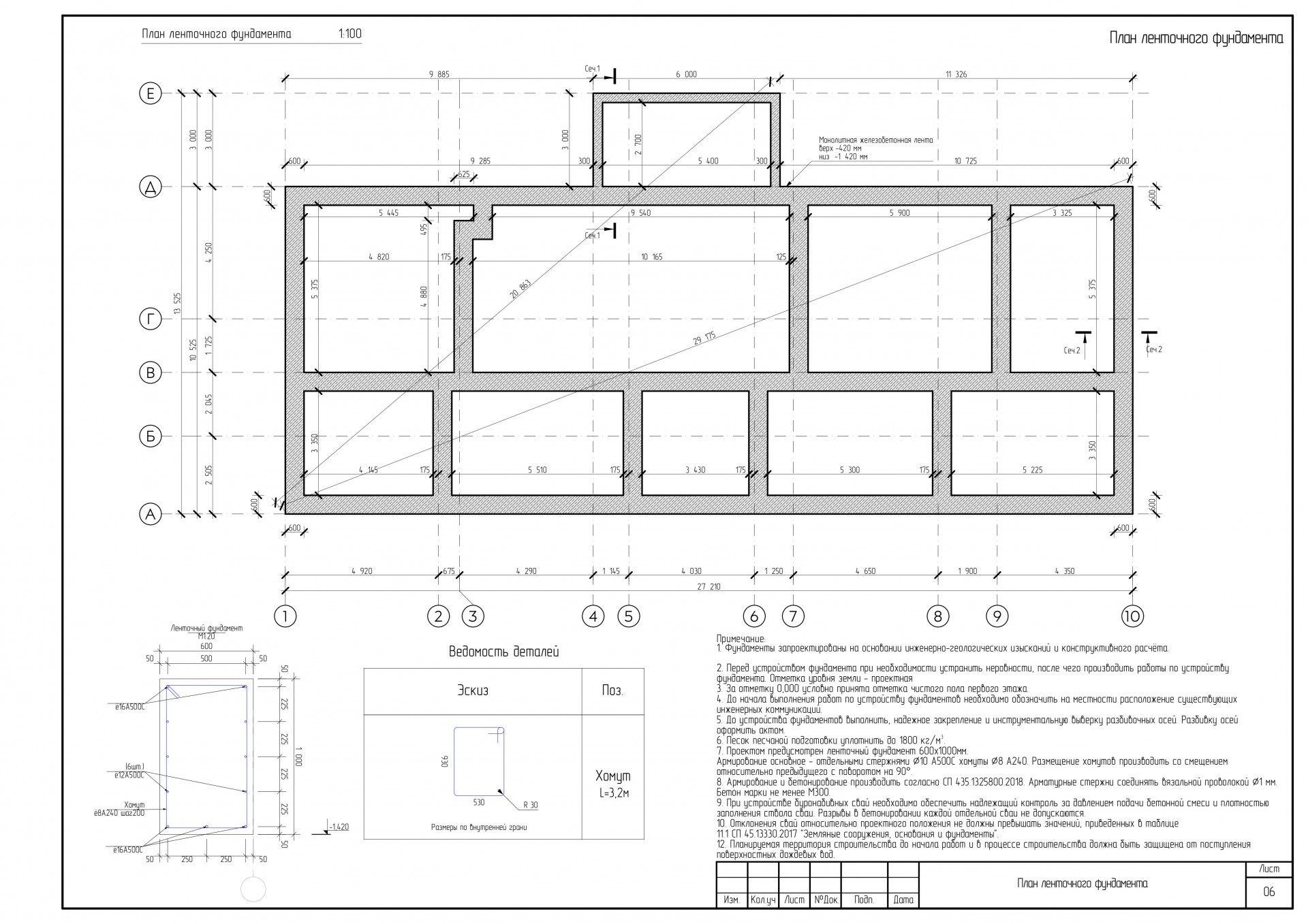 Пожалуй, это самый важный раздел проектной документации, так как он включает чертежи фундамента, перекрытий, несущих конструкций крыши, колонн, столбов, армопоясов, балок, ригелей, лестниц.