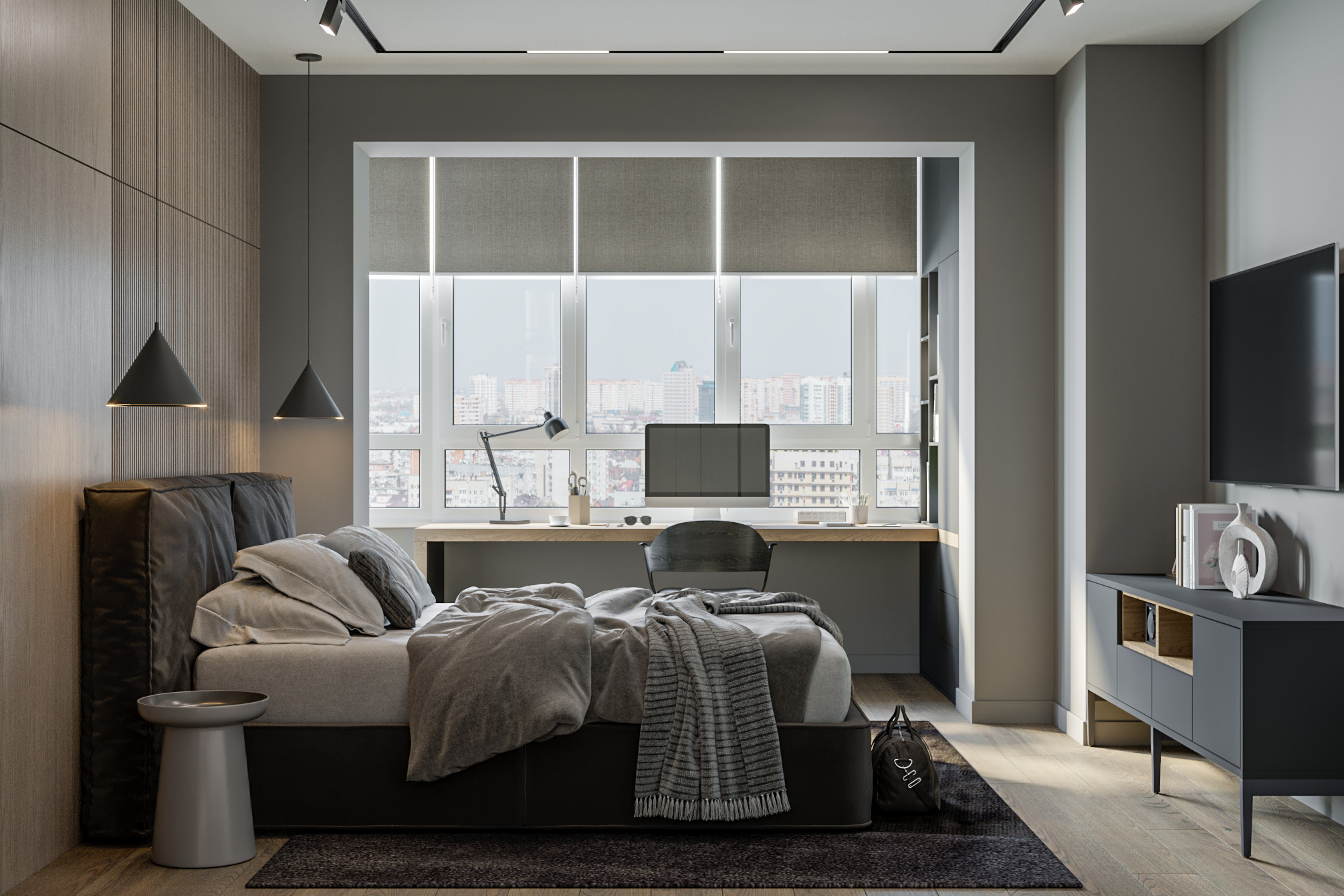 Именно так мы и поступили в нашем проекте — место для чилла органично вписалось как по цветовому решению, так и в плане функциональности. Также с раннего утра и до наступления вечера можно не пользоваться светильниками благодаря естественному источнику света, проникающему через окна.