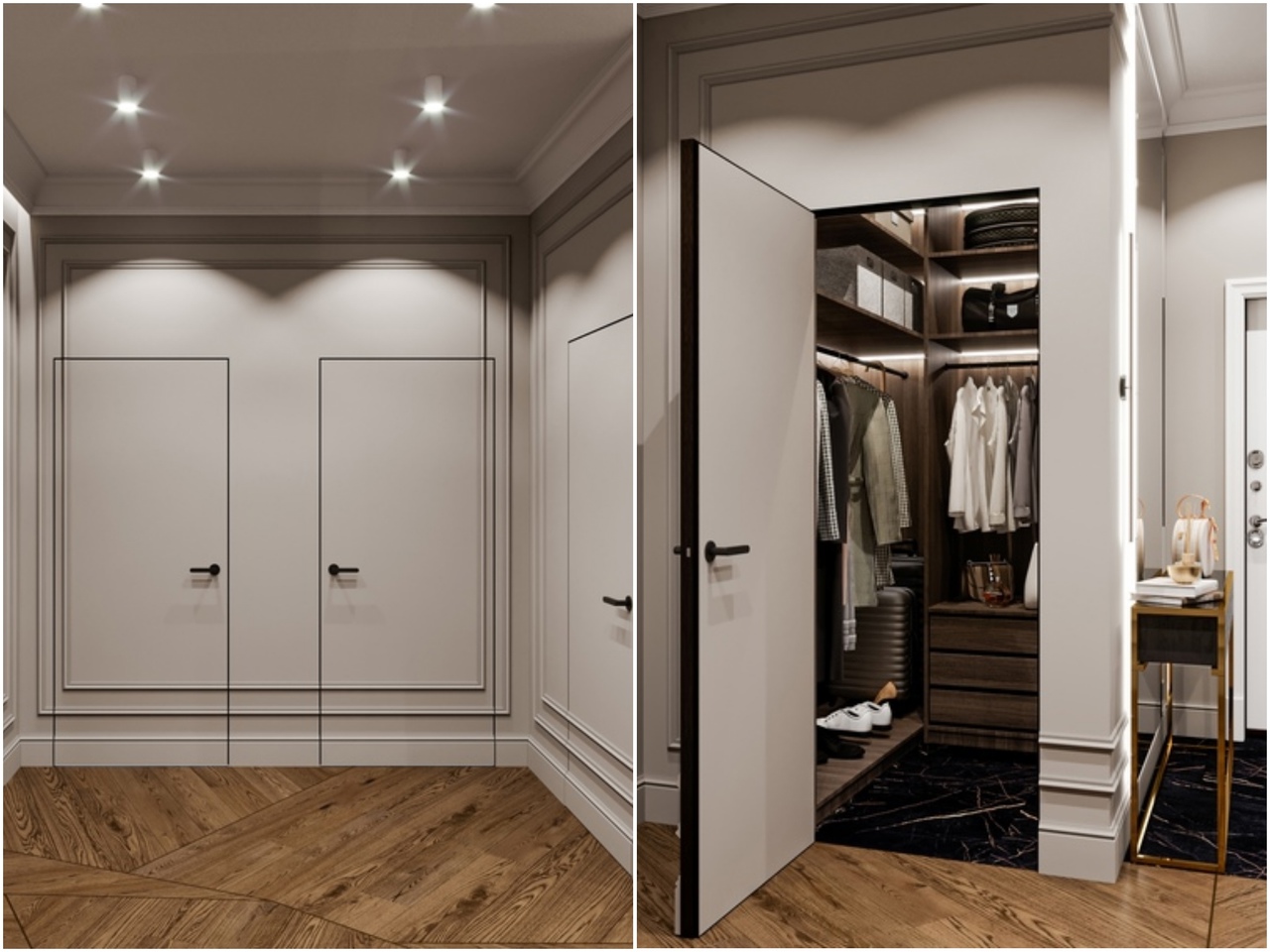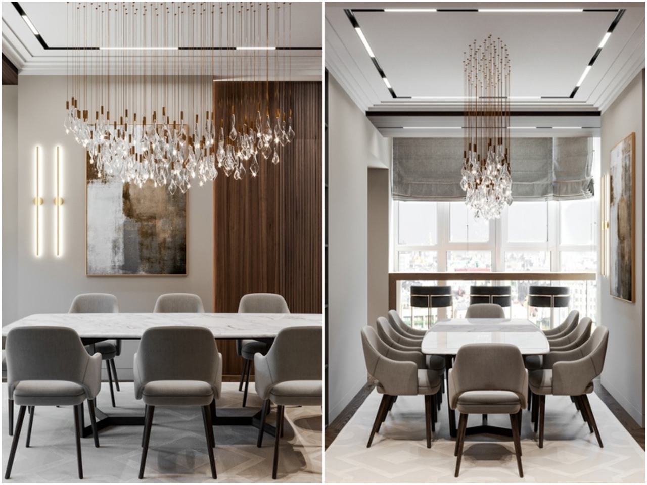 В проекте команда задействовала все большие лоджии, две из которых объединены с комнатами: одна стала частью кухни-гостиной, с помощью которой появилась большая столовая и увеличилось количество естественного света.